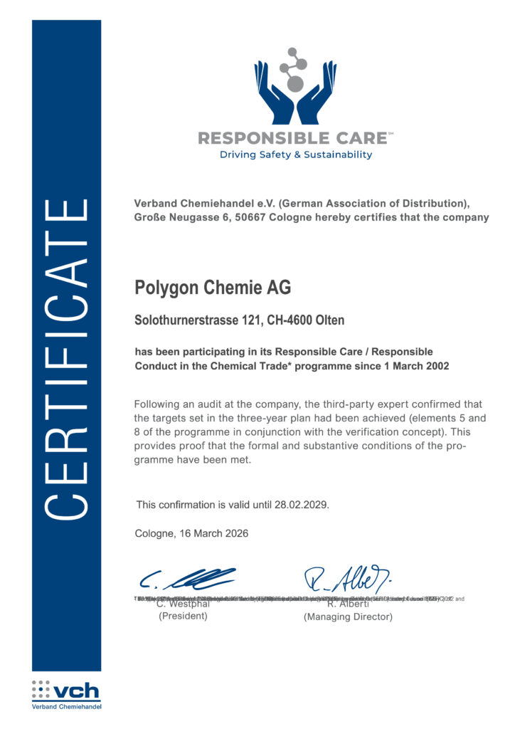 At Polygon Chemie AG, sustainability is not a standalone initiative, but an integral part of how we run our business – shaping the way we interact with the environment, our employees, our business partners and our entire supply chain.